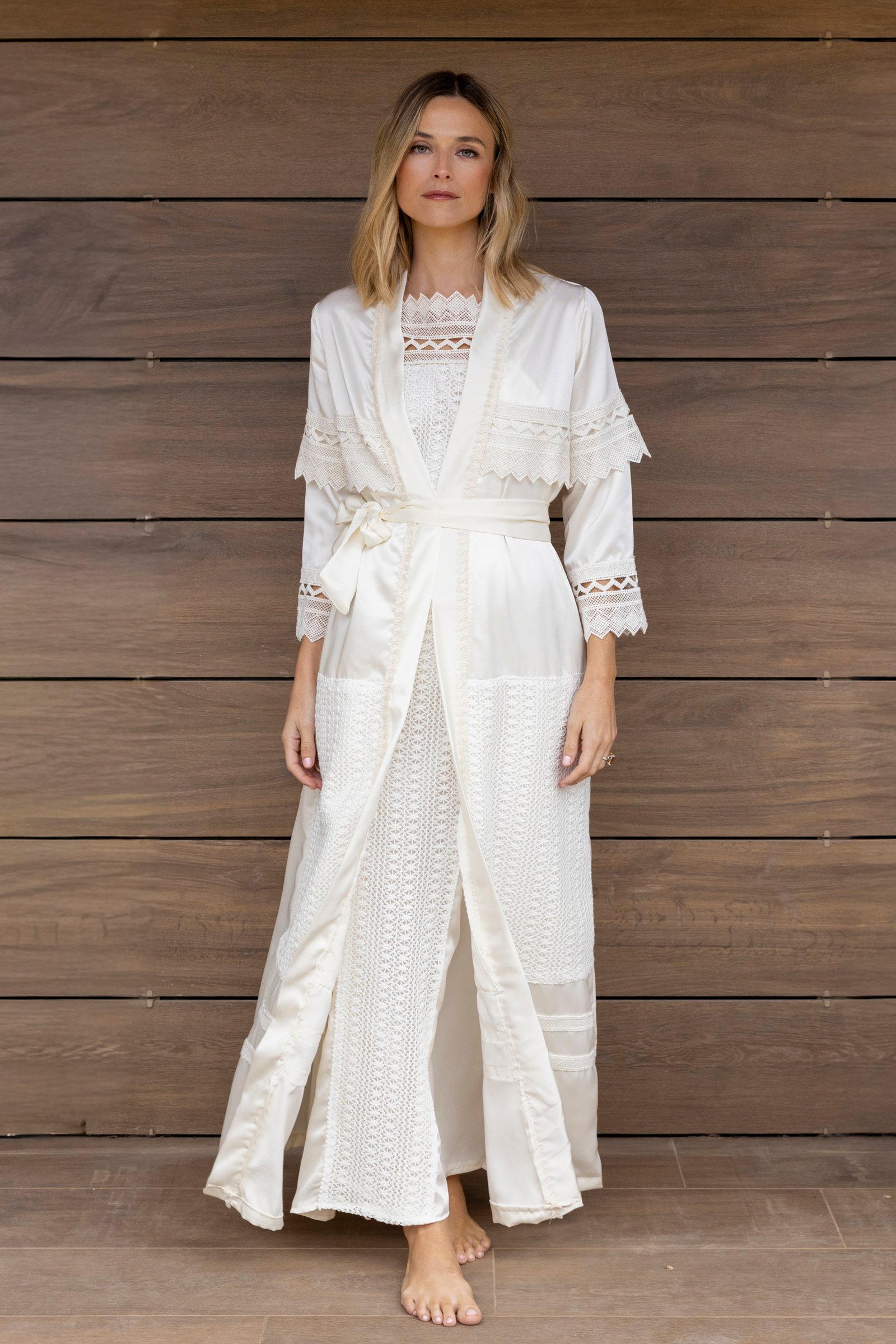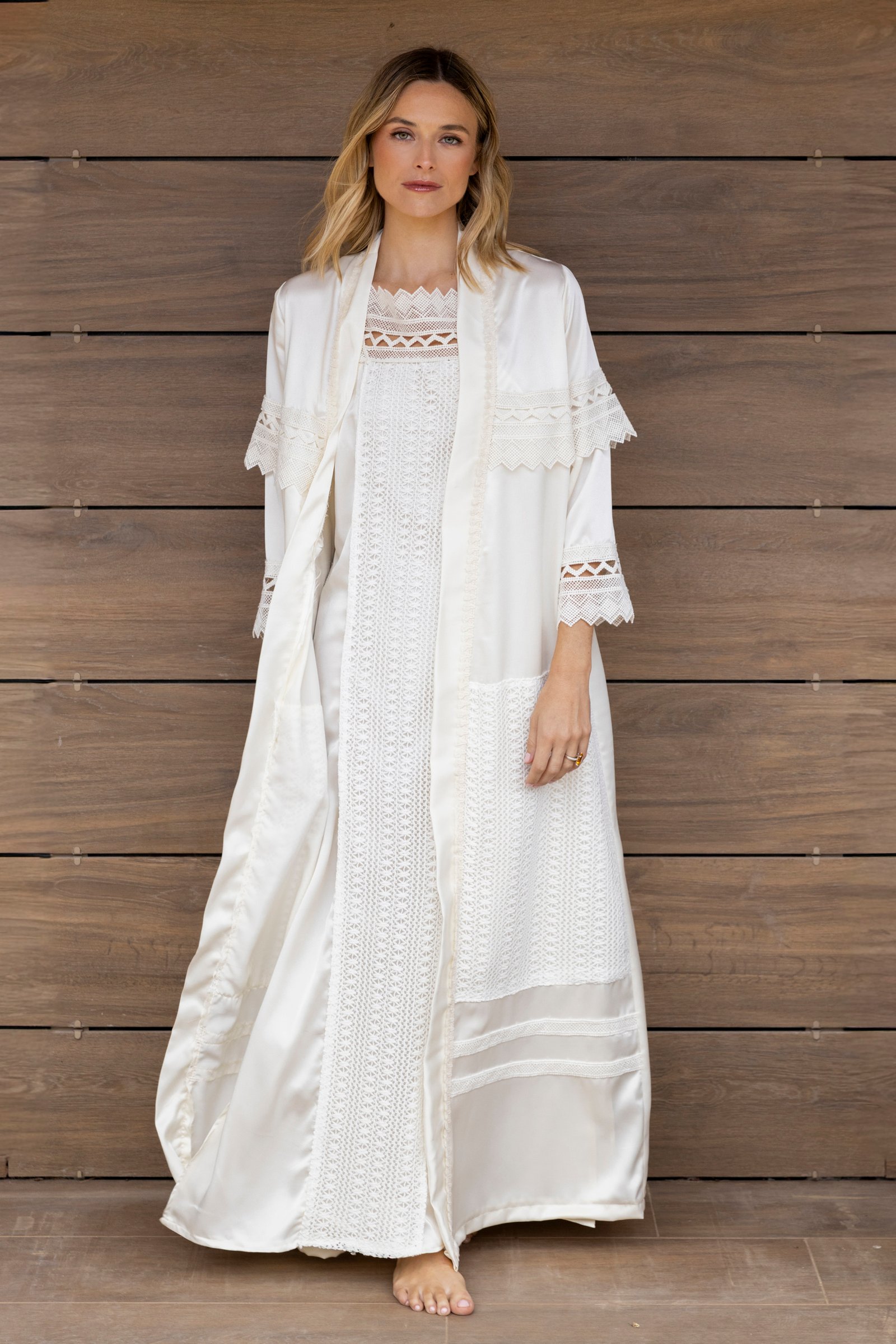 • Su diseño combina la elegancia del satén con la artesanía del bordado, creando una prenda versátil y sofisticada, ideal para momentos de intimidad o para completar un conjunto especial.