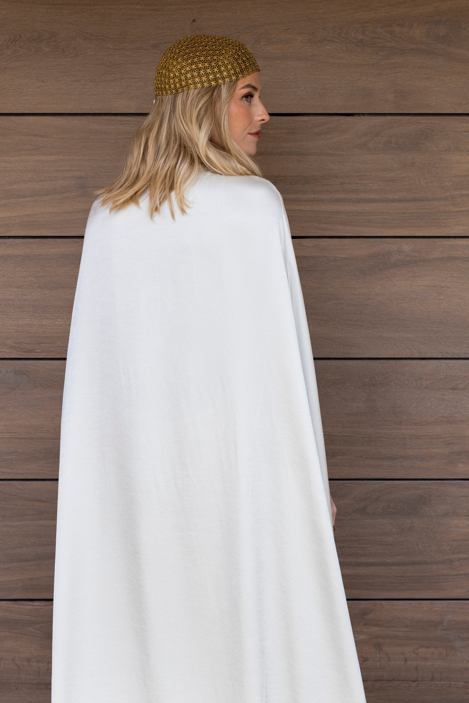 • La ligera cola posterior añade un toque de sofisticación y caída elegante, convirtiéndola en una prenda única, ideal para acompañar momentos especiales.