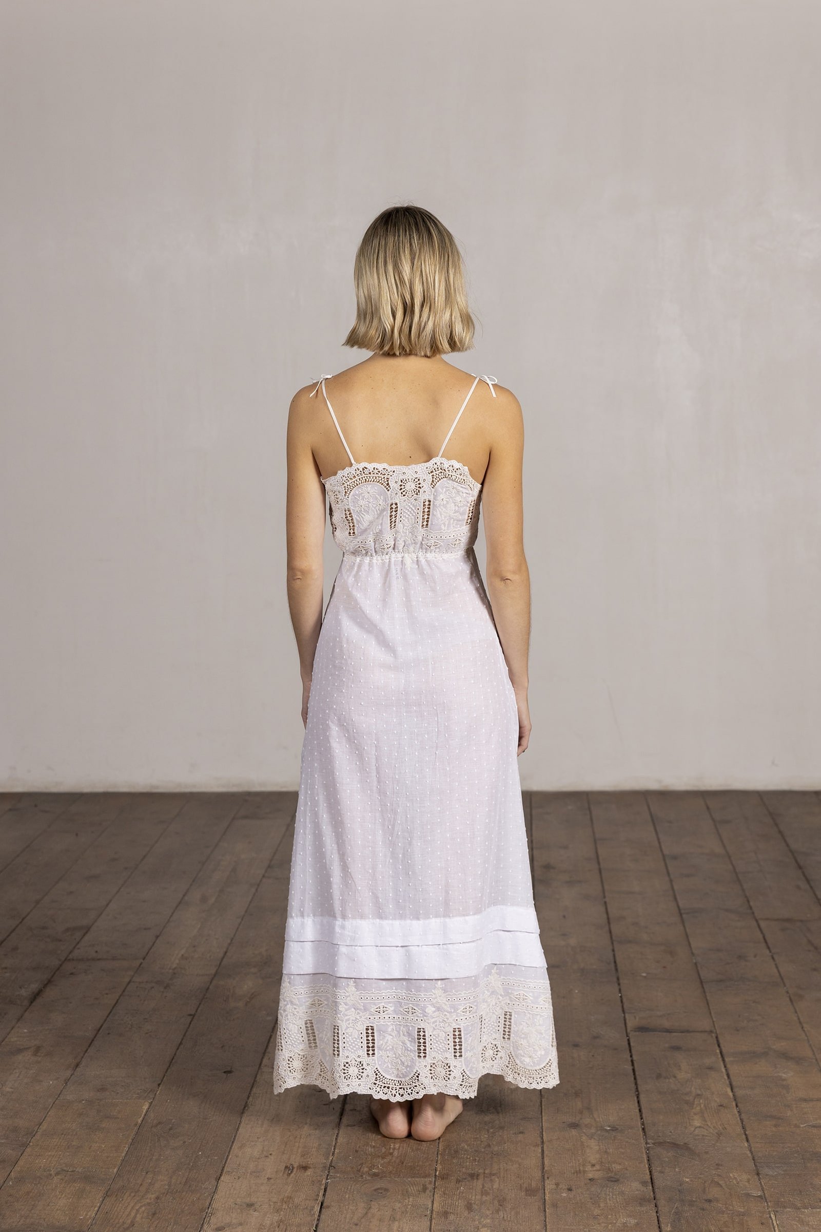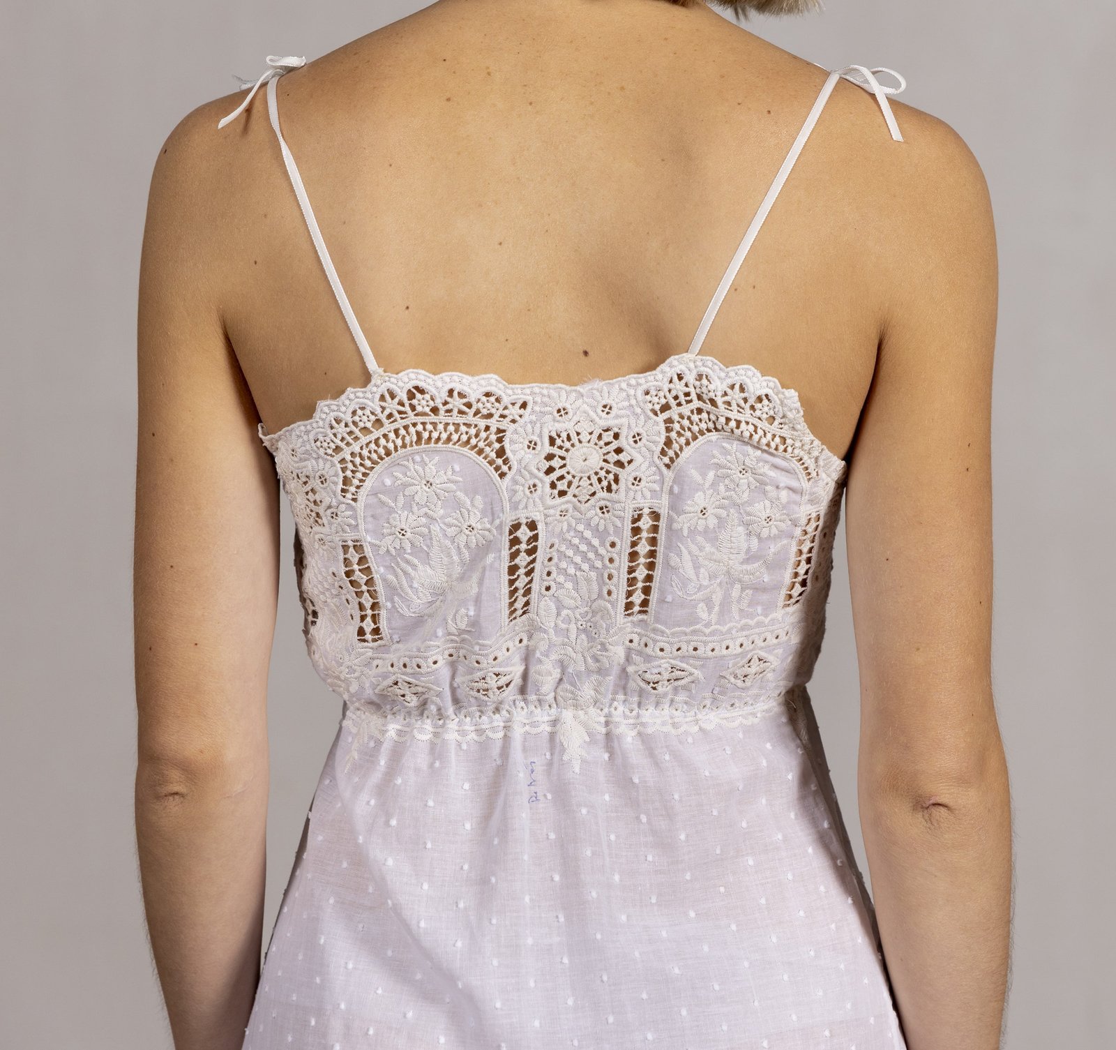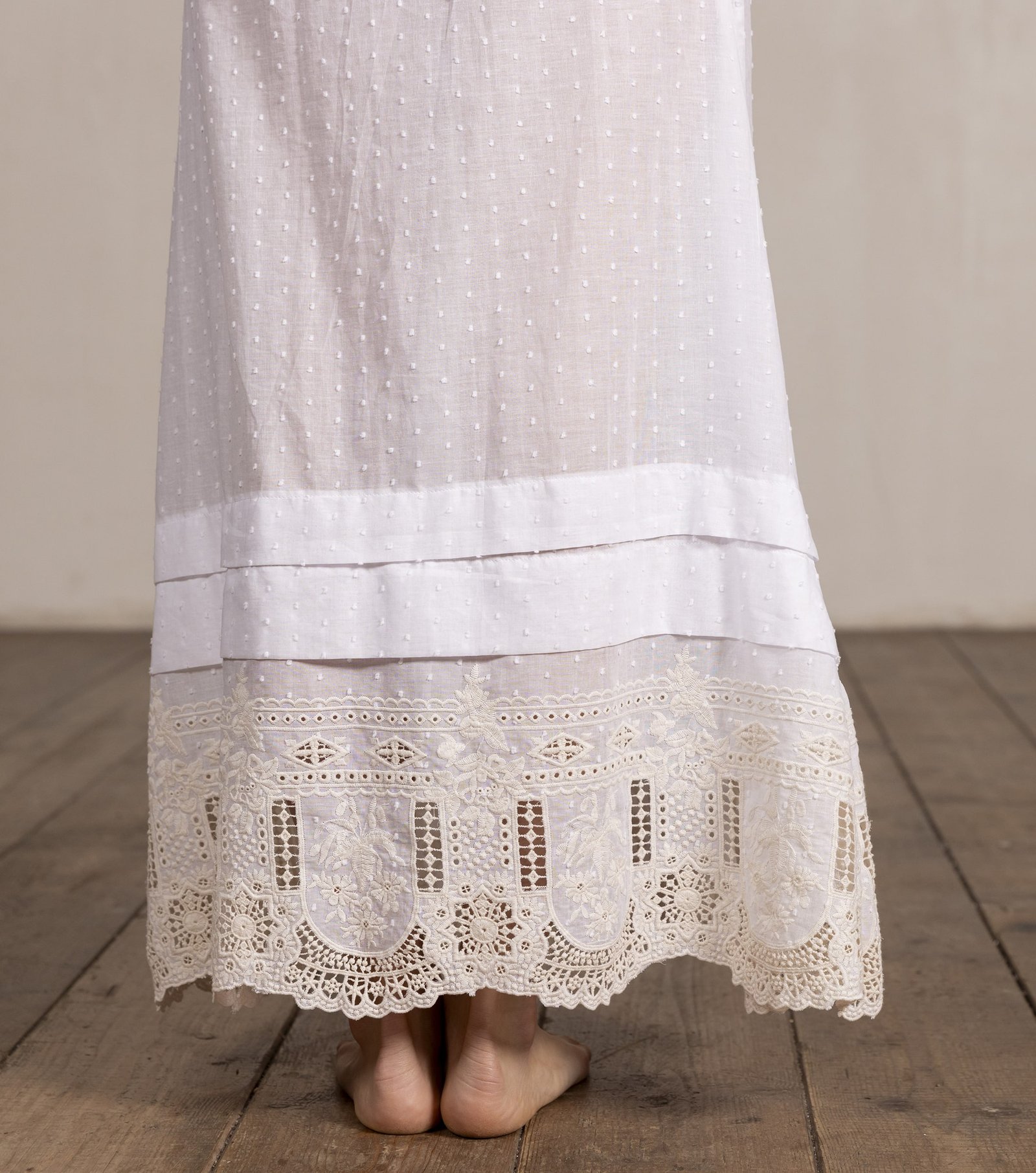 - Encantador camisón confeccionado en plumetti de algodón blanco con bordados en beige.