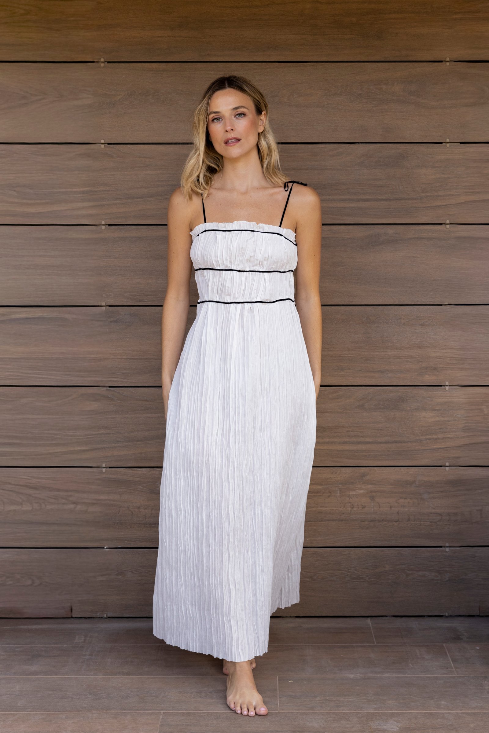 - Camisón largo confeccionado en muselina de algodón plisada, con un diseño ligero y fluido que envuelve la silueta con naturalidad.
