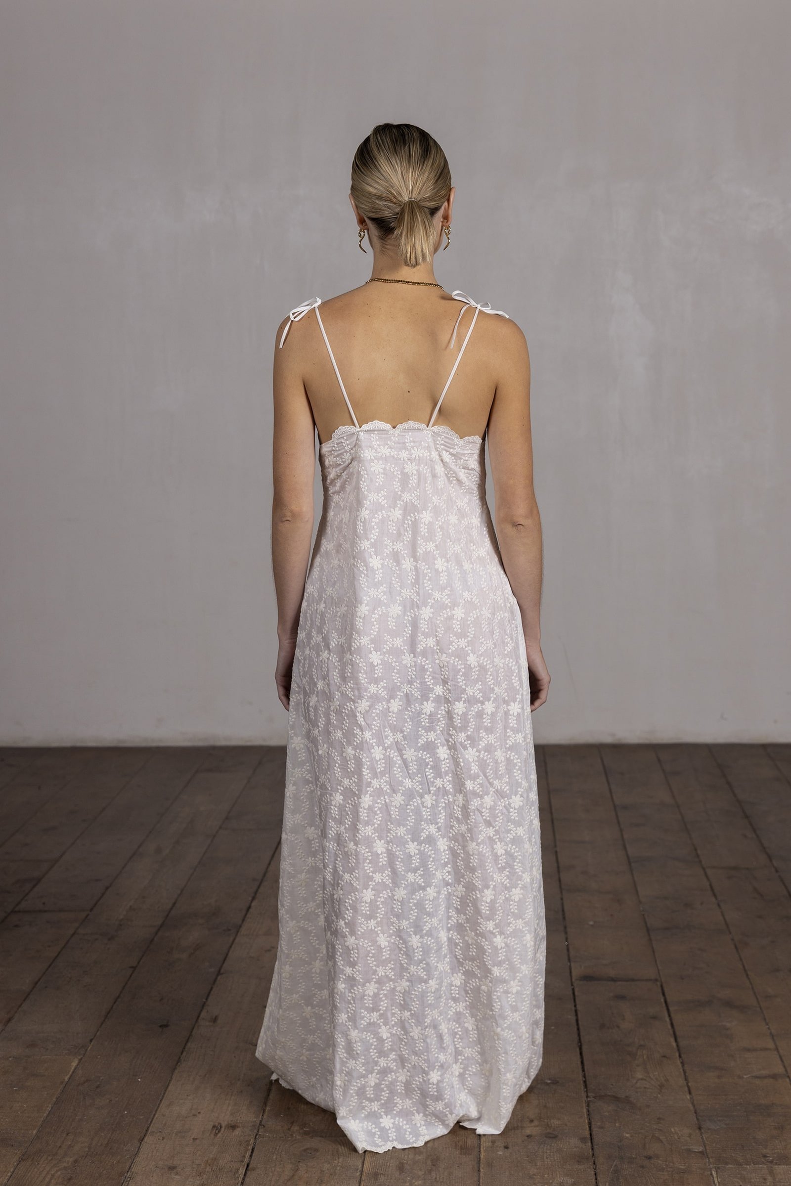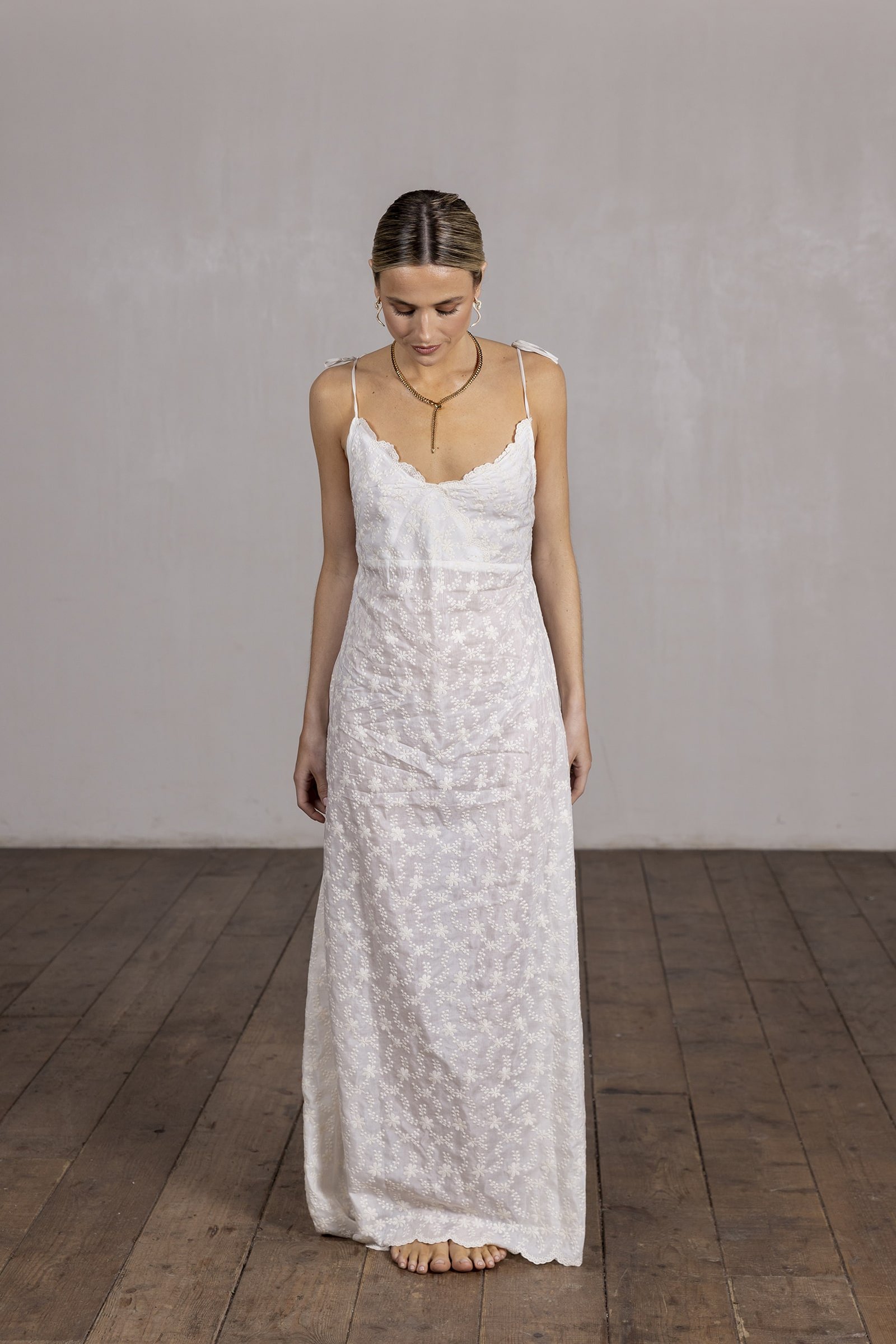 - Lujoso camisón elaborado en seda bordada, diseñado con un elegante escote en V que realza la feminidad.