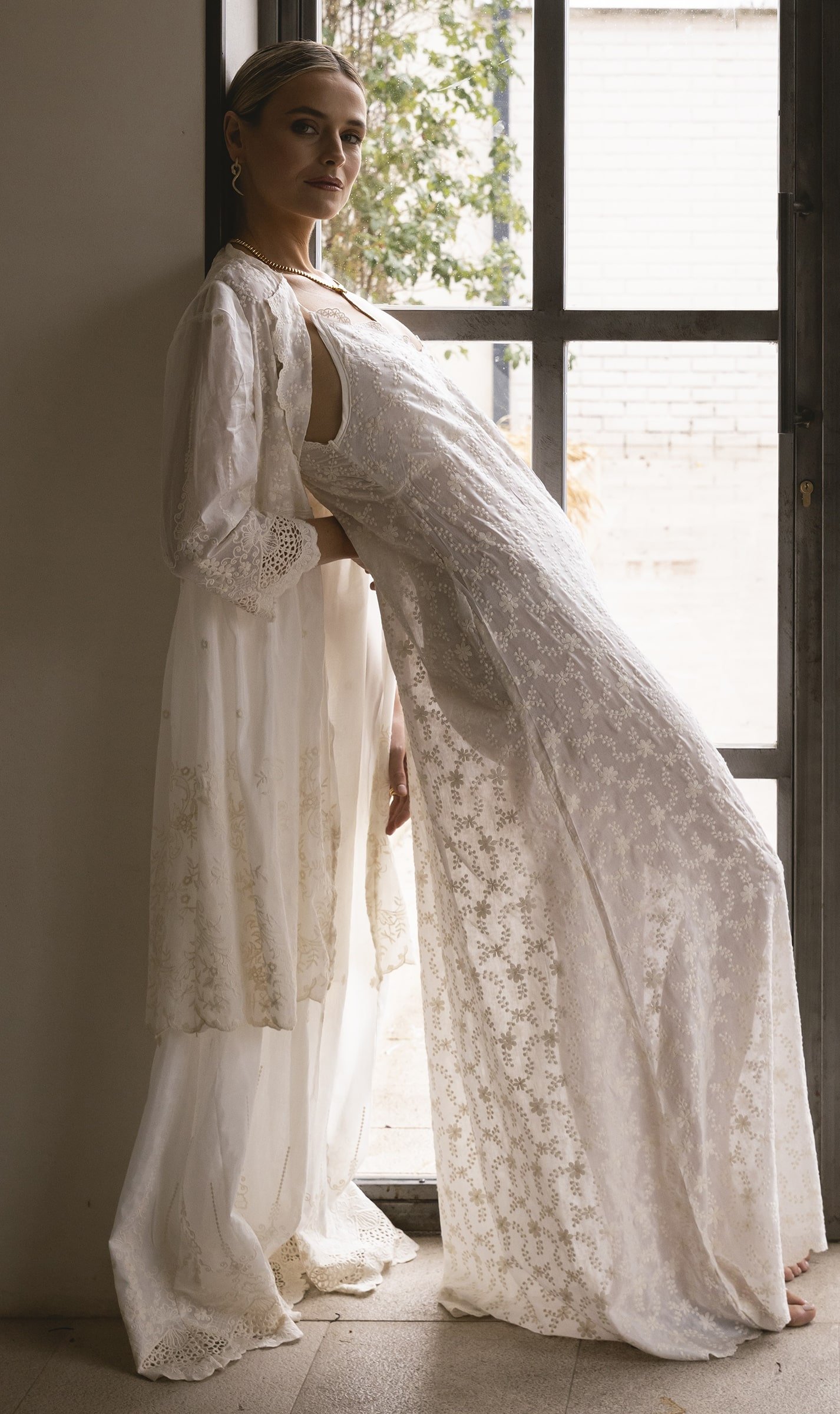 - Combina perfectamente con la bata Valentina o cualquier otra bata de seda bordada, creando un conjunto de lencería refinado y sofisticado